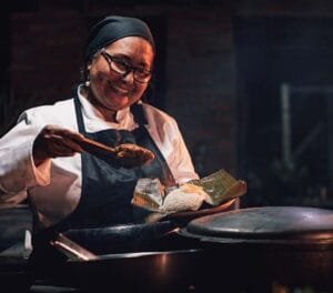 Y en el origen de dichos, la gastronomía deja su sello. Eumeny cuenta que hay una plantita que crece de manera silvestre donde hay humedad y en Manabí la han bautizado como culantro de pozo, imprescindible para muchas recetas.
