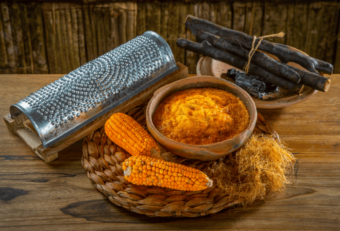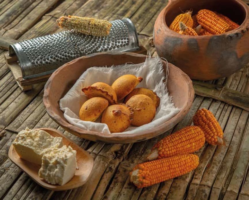 Del maíz, nuestros pueblos originarios han realizado muchas cosas. Una de ellas es la empanada, una pieza esencial. Comienza con el maíz amarillo cocido, se desgrana y se muele sin quitarle el piquillo. Este detalle marca la diferencia: al pasar por el molino, el grano se compacta y se convierte en una masa uniforme que se estira para formar discos perfectos, listos para rellenar. Y aquí viene la magia: el relleno. La de queso rallado es un clásico, las favoritas siempre serán las de queso y longaniza ahumada, que traen todo el sabor y el ahumado.