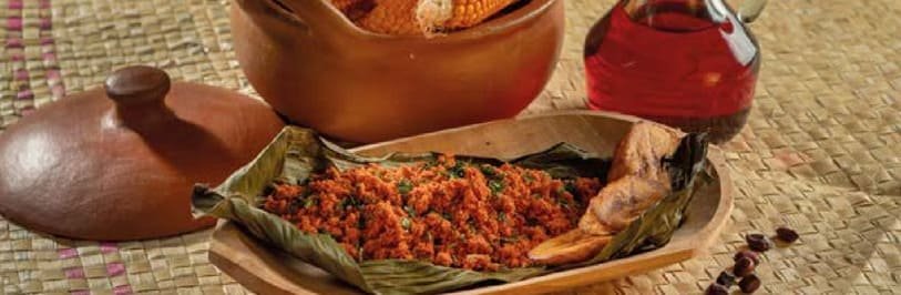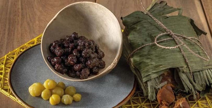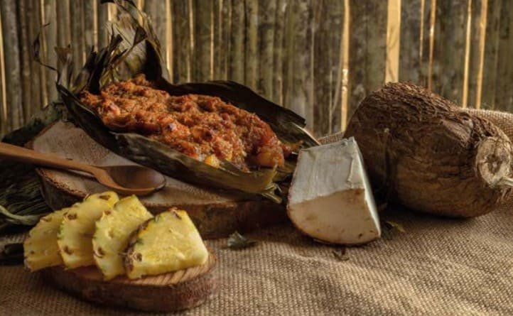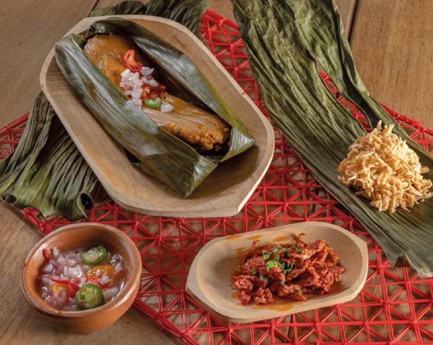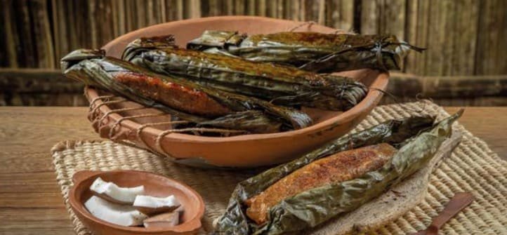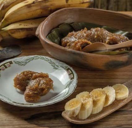La hoja de plátano es el envoltorio y aporta levaduras probióticas que se activan con el calor y el contacto con los ingredientes, creando un sabor inigualable.