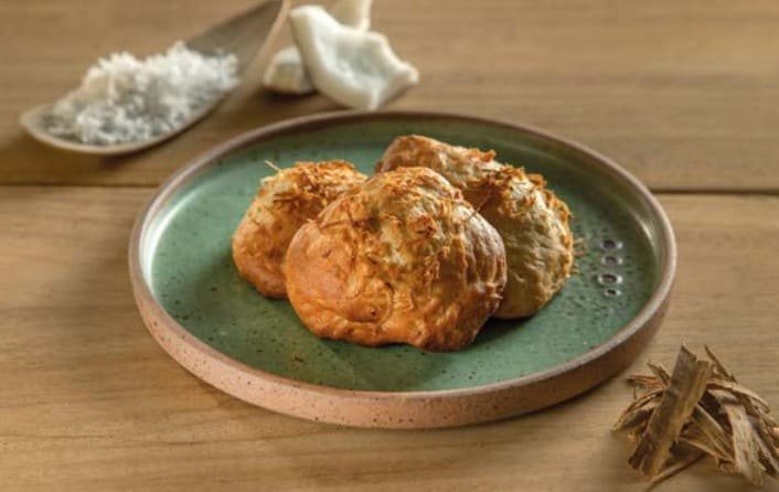 En un recipiente con agua tibia, disolver la levadura junto con el azúcar y dejar reposar hasta que espume. Derretir la mantequilla en un recipiente aparte. En un tazón grande, mezclar la leche de coco, el agua con levadura y la mantequilla derretida. En otro tazón, combinar la harina y la canela en polvo. Agregar la mezcla líquida a los ingredientes secos y amasar hasta obtener una masa homogénea. Porcionar la masa con una cuchara y dar forma redonda a cada porción, utilizando un cucharón como guía. Decorar con coco rallado al gusto. Llevar al horno precalentado a 160 °C durante 15 minutos, o hasta que estén doradas.