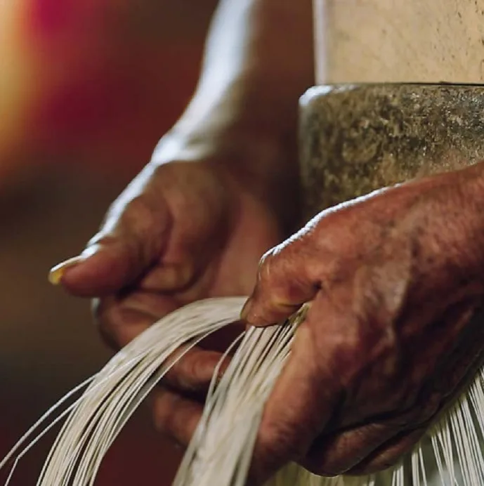El tiempo parece en otra dimensión en las manos de los tejedores que con paciencia dedican horas que pueden trans- formarse en meses e incluso un año, para obtener las hermosas piezas. Del tiempo y la finura se obtendrá su precio. En silencio absoluto, sin distracciones de la vida actual, al alba o al caer la tarde, concentrados y conectados con su trabajo profundo dejan una parte de cada uno en la obra final, esa que, en la cabeza de quien lo compró, vivirá otras historias de las que los tejedores ya no sabrán.